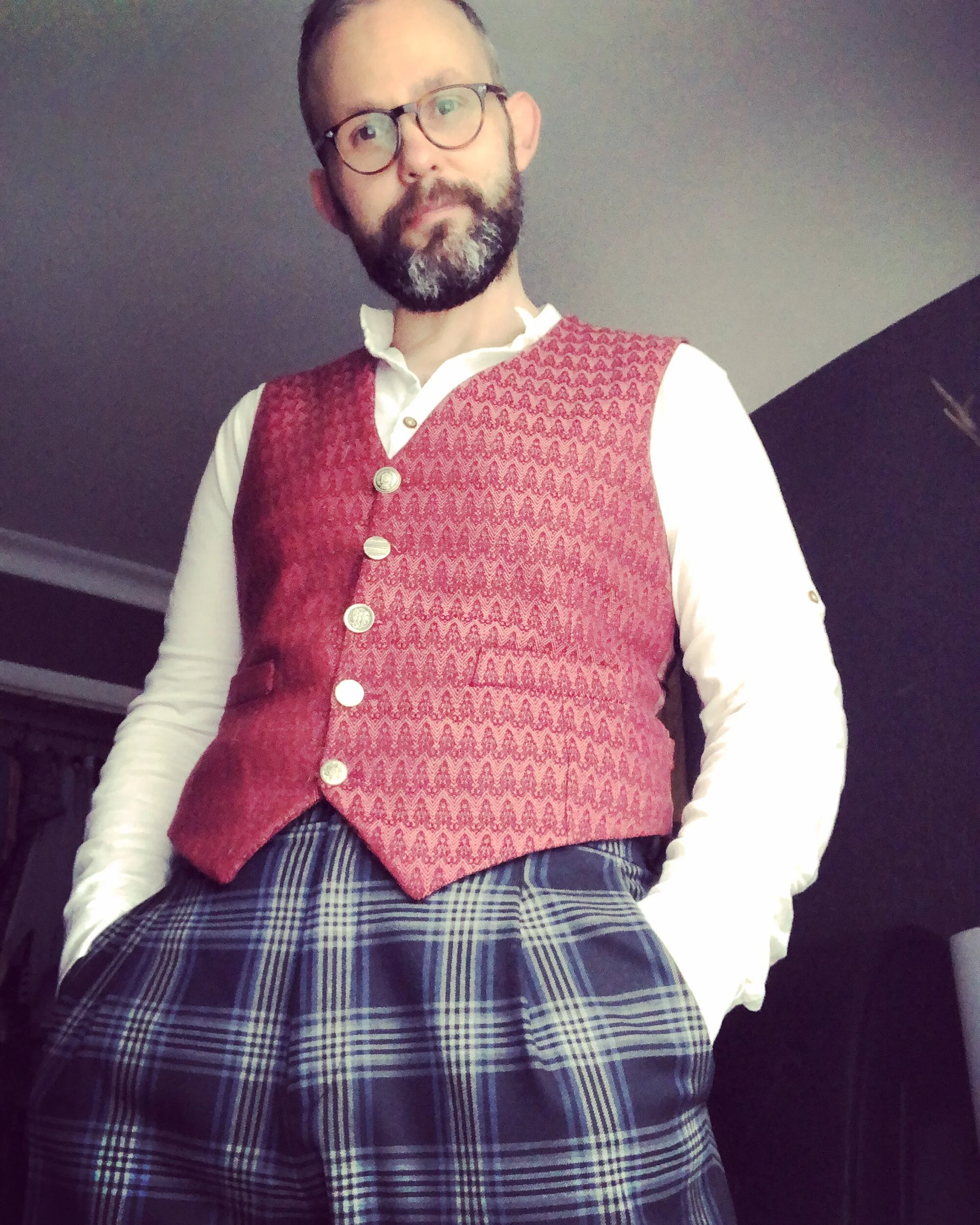 The fabric for this waistcoat was bought from the Worcestershire Resource Exchange, you may have spotted me wearing in on The Great British Sewing Bee last year.