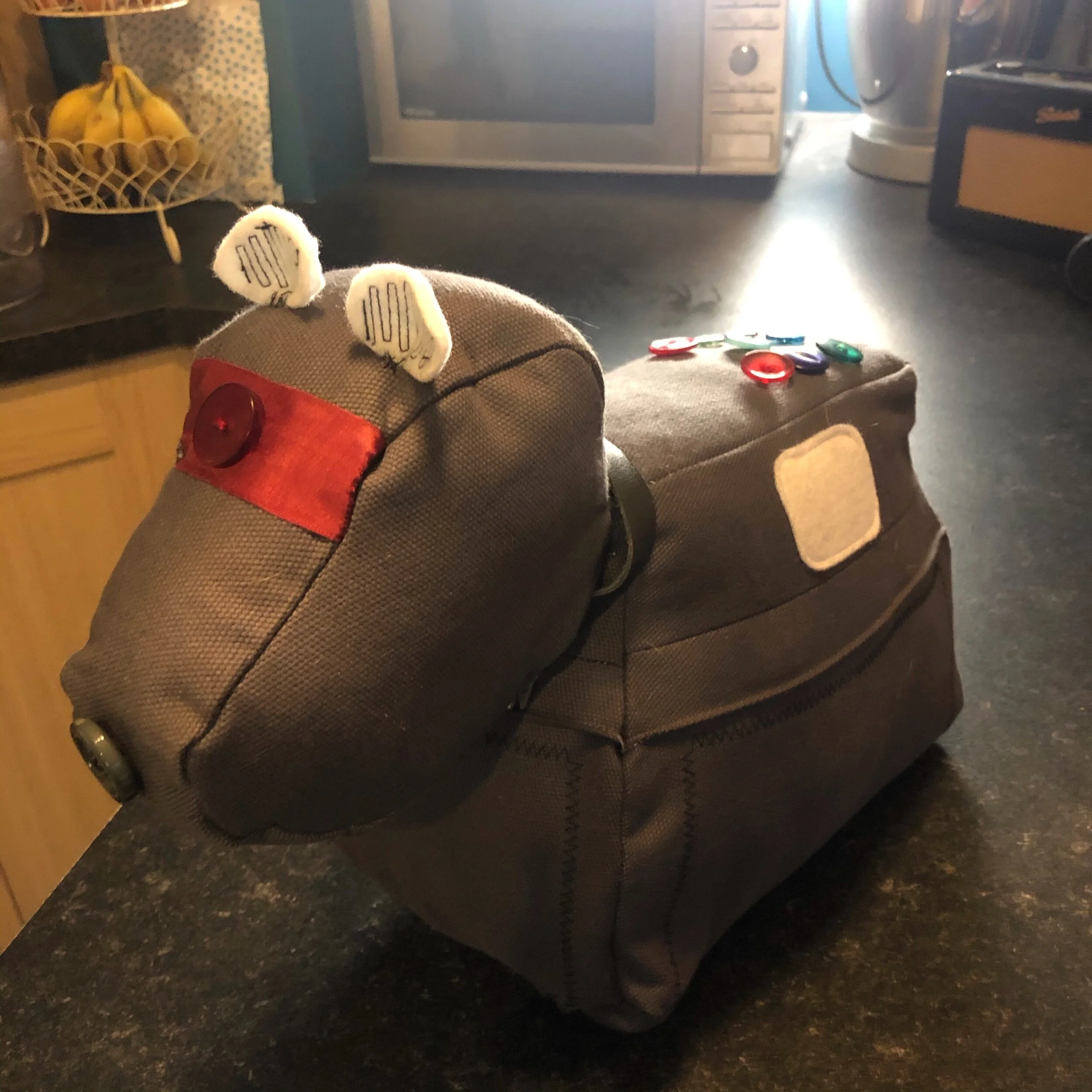 I bought the fabric for my K-9 doorstop from a local charity shop. This tough fabric was perfect for this hard working item.