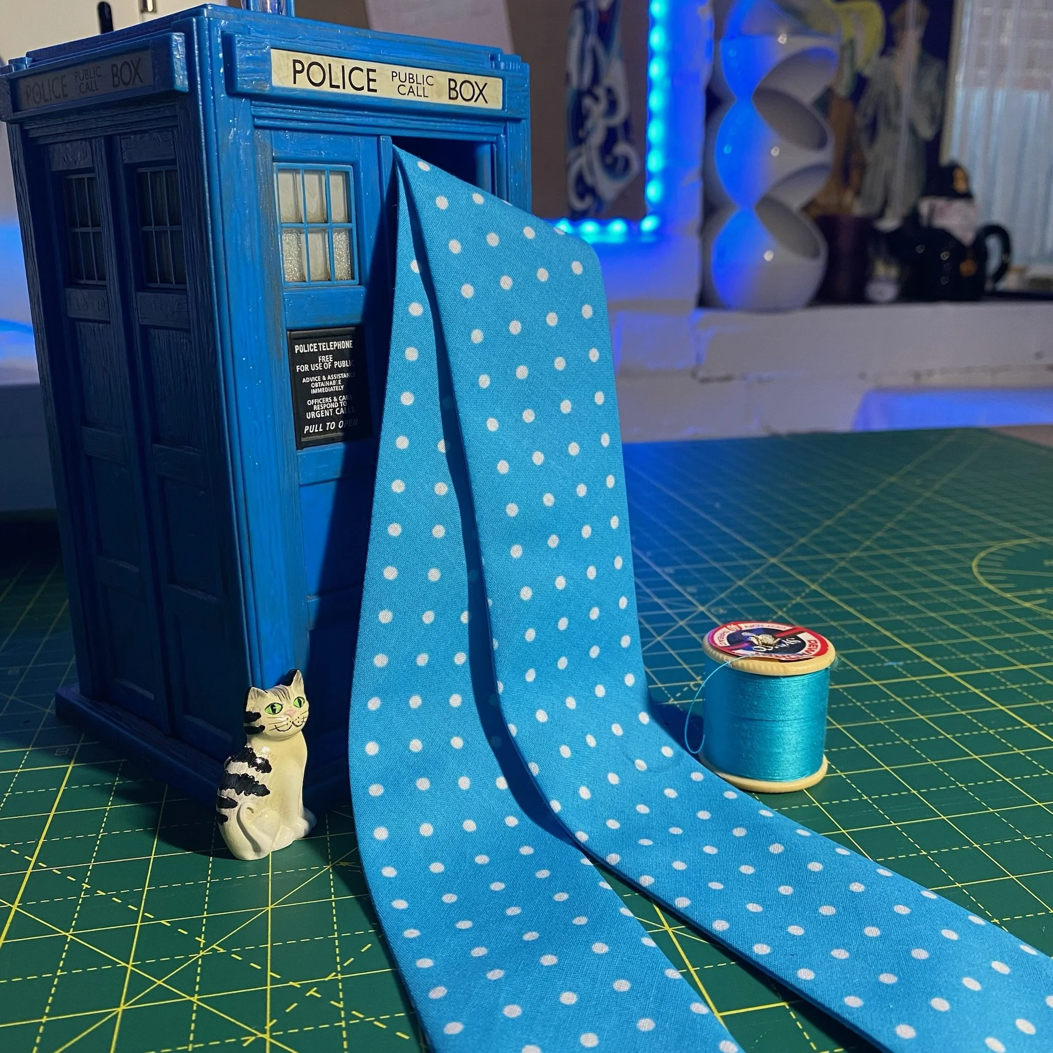 The finishing touches are always fun to make and wear. The sewing pattern to make your own is available in my shop or there’s Doctor Who inspired ties ready to buy on my Cosplay Everyday page or in my Lavalliere Cravat Collection.